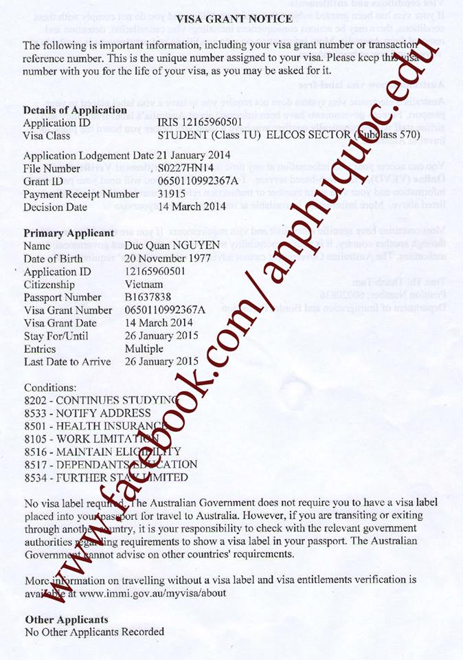 Anh Nguyễn Đức Quân tốt nghiệp đại học năm 2001 và đã đi làm được hơn 10 năm. Để có thể phát triển sự nghiệp, anh quyết định theo học khóa học Thạc sỹ tại Úc. Tuy vậy, thời gian anh thôi học đã lâu nên rất khó để chứng minh lý do du học chính đáng. An Phú Quốc đã hỗ trợ và xin thành công visa Úc giúp anh Quân theo học khóa học tiếng Anh tại trường ELS Sydney. Hi vọng khóa học này sẽ là tiền đề giúp anh tiếp tục việc học của mình.