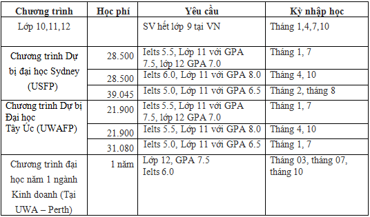 - Học phí: Học phí trường công từ 10.000-15.000 AUD mỗi năm, trường tư 16.000-32.000 AUD mỗi năm, sinh hoạt phí từ 12.000-16.000 AUD mỗi năm