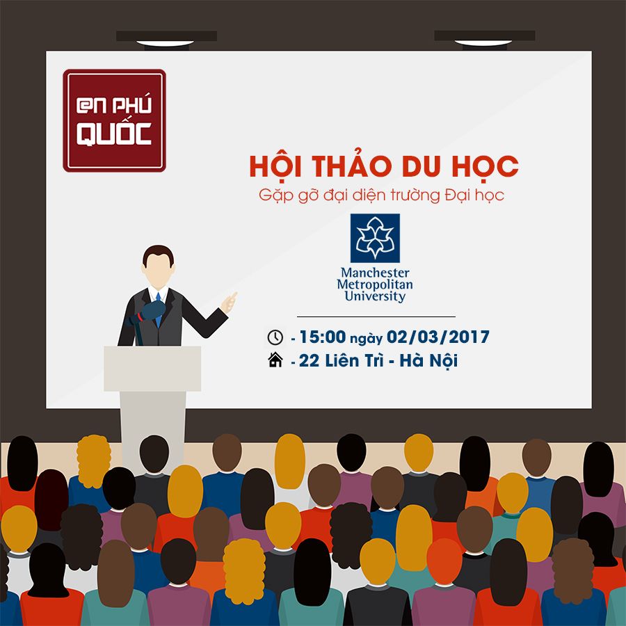 Đại diện trường Manchester Metropolitan University và Công ty tư vấn du học An Phú Quốc thân mời các vị phụ huynh, học sinh, sinh viên quan tâm đến du học Anh tới tham dự buổi trao đổi thông tin trực tiếp và gặp gỡ đại diện của trường