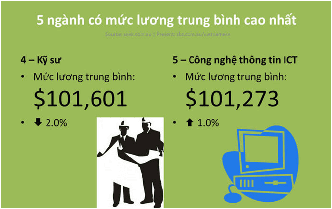 Bạn đang muốn lựa chọn ngành nghề du học Úc? Bạn đang phân vân đâu là ngành nghề đang có mức thu nhập trung bình cao nhất tại Úc? Những thống kê sau sẽ mang tới cho bạn cái nhìn tổng thể
