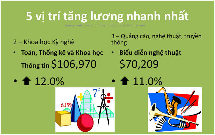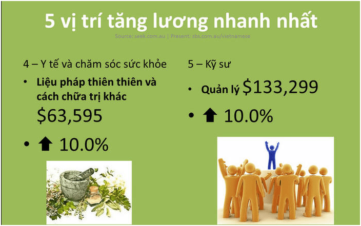 Năm công việc lương tăng nhanh nhất theo thứ tự từ cao đến thấp: