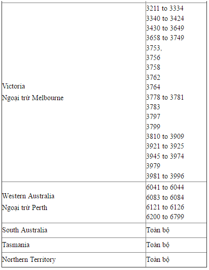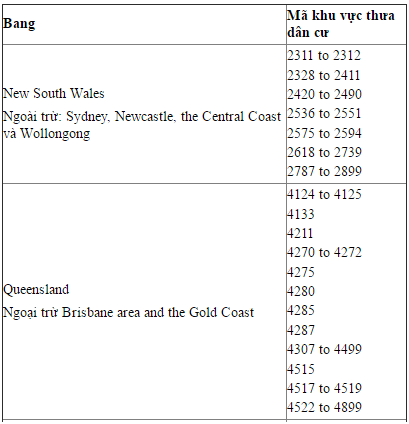 Theo Ban nhập cư Australia (Department of immigration Australia) những khu vực có dân cư thưa thớt, tăng dân số chậm tại các bang được quy định như sau: