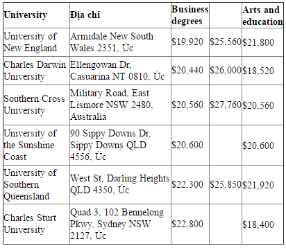 Lưu ý: danh sách chỉ mang tính tham khảo theo nguồn: https://universityreviews.com.au/lowest-tuition-fees/